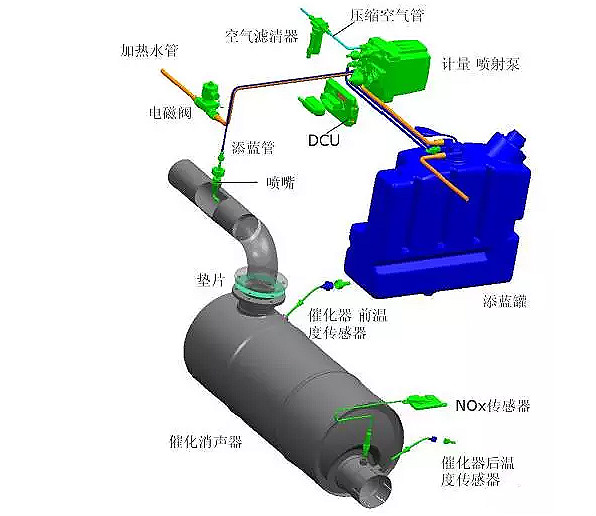 用戶國(guó)5發(fā)動(dòng)機(jī)采用SCR選擇性催化還原技術(shù),可滿足國(guó)5的排放法規(guī)。柴油機(jī)所產(chǎn)生的微粒(PM)和氮氧化物(NOx)是排放中兩種最主要的污染物。從目前降低汽車(chē)尾氣排放的技術(shù)途徑來(lái)看,要達(dá)到國(guó)4、國(guó)5排放標(biāo)準(zhǔn),一般不再?gòu)陌l(fā)動(dòng)機(jī)本身的結(jié)構(gòu)方面采取措施,通常是采取排氣后處理的方式來(lái)降低污染物的排放量,而尿素-SCR 選擇性催化還原法是最具現(xiàn)實(shí)意義的方法。