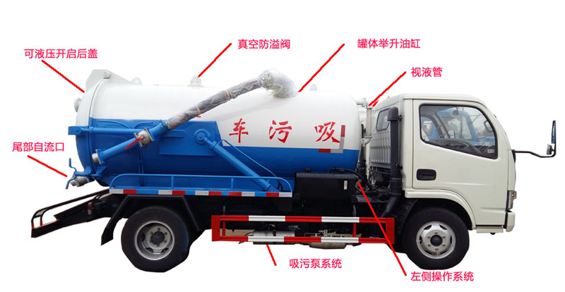 吸污車專用部分由取力器、傳動軸、真空吸污泵、壓力罐體、液壓部分,管網(wǎng)系統(tǒng)、真空壓力表、視糞窗、洗手裝置等組成,隨車配置大功率真空吸污泵(可選裝水環(huán)式真空泵)和優(yōu)質(zhì)液壓系統(tǒng),罐體封頭一次壓鑄成型、雙頂自卸。