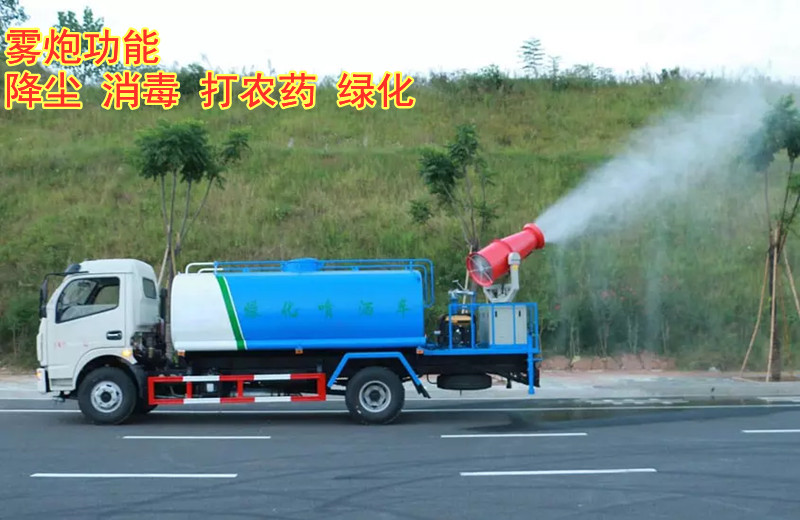 灑水車工作主要由發(fā)動機(jī)帶動變速箱,變速箱上安裝的取力器帶動灑水車水泵產(chǎn)生動力,將罐體內(nèi)部的水通過管路噴灑出去,水泵可自吸自排。可根據(jù)用戶需求選配抑塵霧炮。